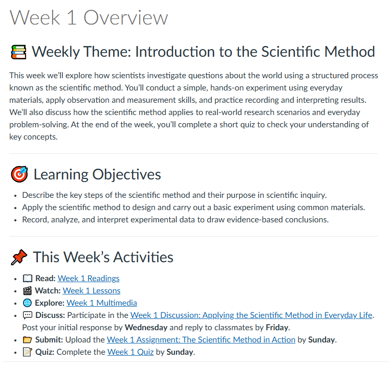 This overview shows how each part of the template contributes to a smooth student experience—and where you'll tailor things for your own course or program.