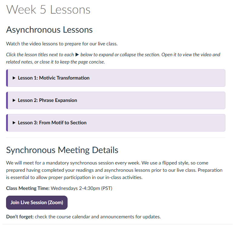 This overview shows how each part of the template contributes to a smooth student experience—and where you'll tailor things for your own course or program.